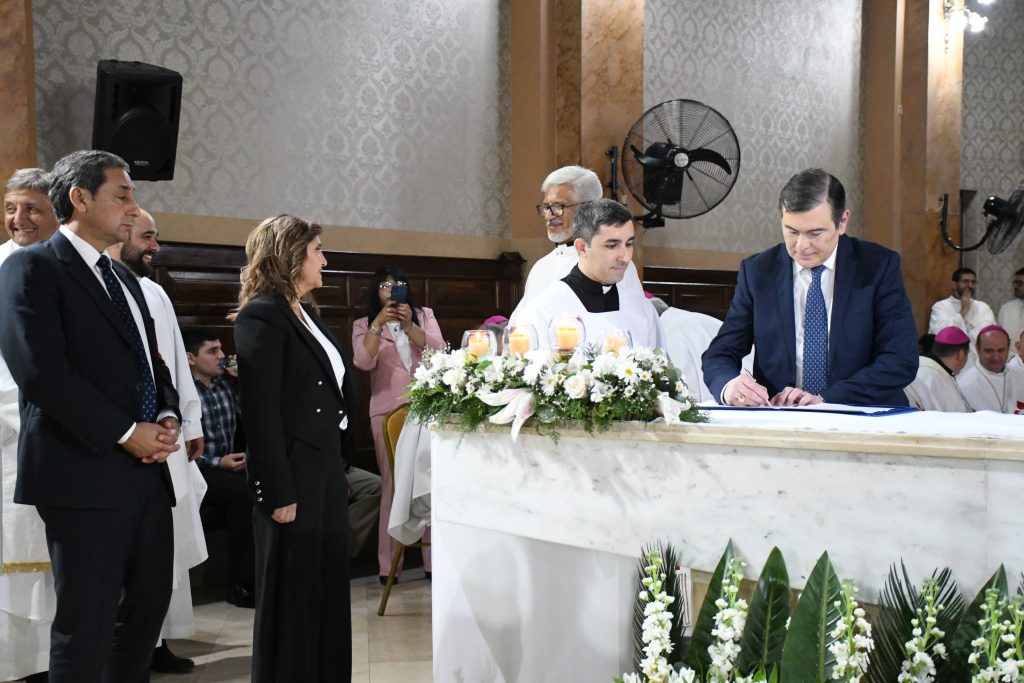 Luego de la homilía del flamante arzobispo de la Arquidiócesis de Santiago del Estero, se realizó la firma del acta de traslado de la sede primada de la Ciudad de Buenos Aires a la «Madre de Ciudades», documento que también fue rubricado por el gobernador Zamora.