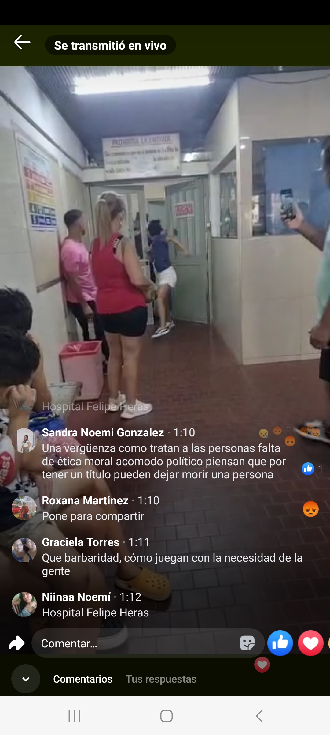 En el video, compartido por la usuaria «Nanu Jaime» se observa como una persona llega en ambulancia con su abuela afectada de la presión al Hospital Heras. La abuela queda en el piso de la guardia, mientras que la nieta se pone a llamar a los enfermeros para que asistan a su abuela.