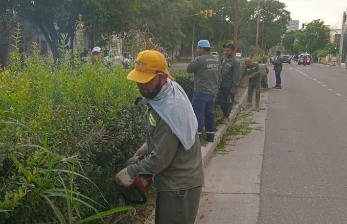 En esta oportunidad, los trabajos se localizaron en el tramo comprendido entre las calles Rivadavia y Ameghino, donde se efectuaron la poda de arbustos, el recorte de césped y el desmalezamiento de canteros.