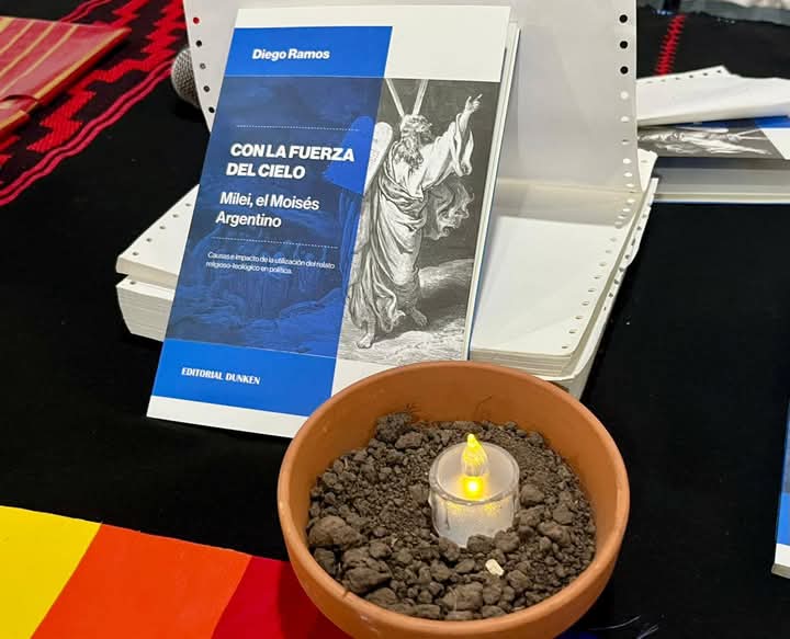 06.02.25 Importante y animada concurrencia. «La teología ha muerto» y el sentido profético de pueblos justos y solidarios de las iglesias, comunidades de fe, quedaron en mano de «las fuerzas del cielo», quienes proponen abandonar el sentido de la política y llevar a las sociedades a poner la esperanza en el canibalismo del mercado, advierte Ramos. En efecto, en la ciudad de Loreto, con un marco importante de asistentes, referentes políticos, sociales, culturales y religiosos, se presentó el libro del Lic. Diego Ramos titulado: «Con la fuerza del cielo. Milei el Moises Argentino» que, a poco de su lanzamiento, logró alto impacto a lo largo y ancho del país por sus categóricos contenidos de actualidad.