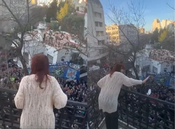 En ese momento, Cristina no dudó en agitar sus brazos y saludar a las miles de personas congregadas frente a su casa.