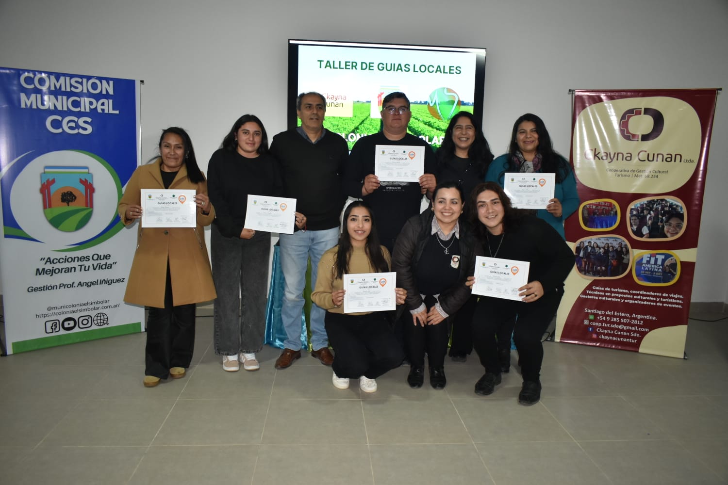 En una emotiva ceremonia encabezada por autoridades de la comisión municipal, se realizó la entrega de certificados a los primeros Guías Turísticos Rurales de Colonia El Simbolar (CES), formados a partir de una importante iniciativa impulsada desde la gestión a cargo del profesor Ángel Iñiguez.