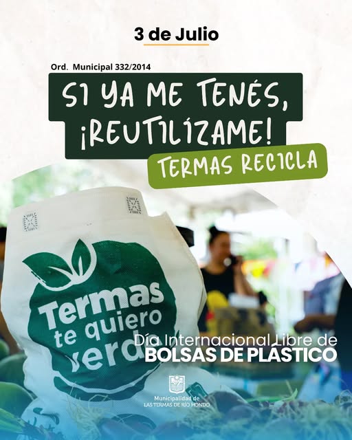 Este 3 de julio se celebra el Día Internacional Libre de Bolsas de Plástico. Esta fecha tiene como objetivo concientizar sobre el impacto negativo que tienen las bolsas de plástico en el medio ambiente y promover su reducción y uso responsable, posteó la Municipalidad de Termas de de Río Hondo.