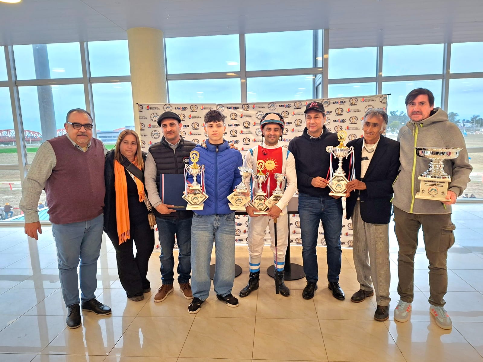 En este marco, el Vicegobernador junto al subdirector del Hipódromo Provincial 27 de Abril, Rodrigo Torrens; ministro de Obras, Servicios Públicos y del Agua, Aldo Hid; secretario Legislativo, Dr. Luis Herrera, entre otros, entregó la Copa Dr. Gerardo Zamora Gobernador al ganador del Clásico Madre de Ciudades, que en esta oportunidad fue el ejemplar de nombre He’s A Rockstar, del stud Las 4 Hermanas.