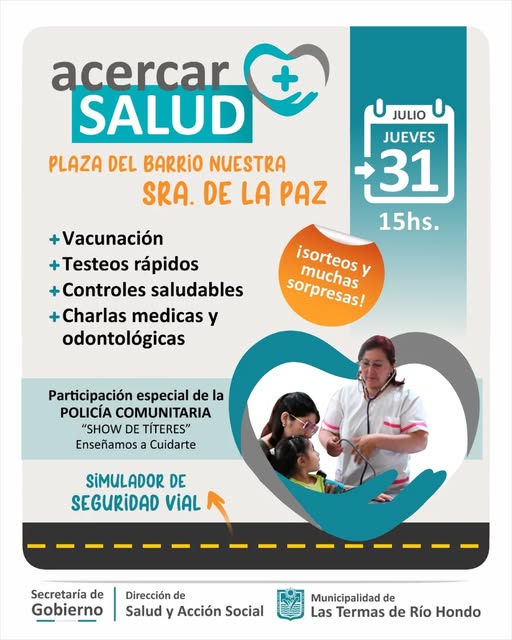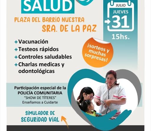 «Este jueves 31 de julio estaremos presentes en la plaza del barrio Nuestra Señora de la Paz a partir de las 15.00 horas con vacunación, testeos rápidos, controles saludables, charlas médicas y odontológicas.