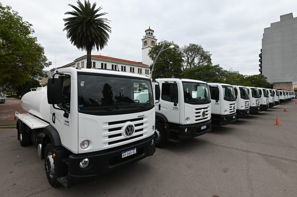 Las unidades Volkswagen 14.190 cuentan con motor Man y tecnología EGR, equipada con tanques regadores con capacidad de 8.000 litros y mecanismo de riego compuesto por una bomba centrífuga con rendimiento de 50 a 60.000 litros por hora y equipo contra incendios.