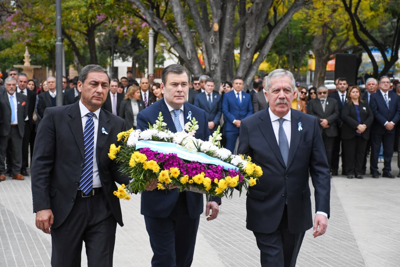 También participaron el vicegobernador Carlos Silva Neder; el jefe de Gabinete de Ministros, Elías Suárez; la intendente de la Capital, Norma Fuentes, el presidente del Superior Tribunal de Justicia, Eduardo López Alzogaray, entre otros funcionarios, ex combatientes de Malvinas y representantes de las fuerzas de seguridad y de instituciones educativas e intermedias. Tras el saludo a los miembros de la Agrupación «17 de Agosto» y la entonación del Himno Nacional se dieron las palabras alusivas, a cargo del presidente de la Asociación Cultural Sanmartiniana, Clemente Di Lullo, quien resaltó la vida y obra del “Padre de la Patria” e invitó a la sociedad a realizar un examen de conciencia en torno al espíritu sanmartiniano, inspirado en la unidad y la fraternidad como principios para convivir como verdaderos hermanos.