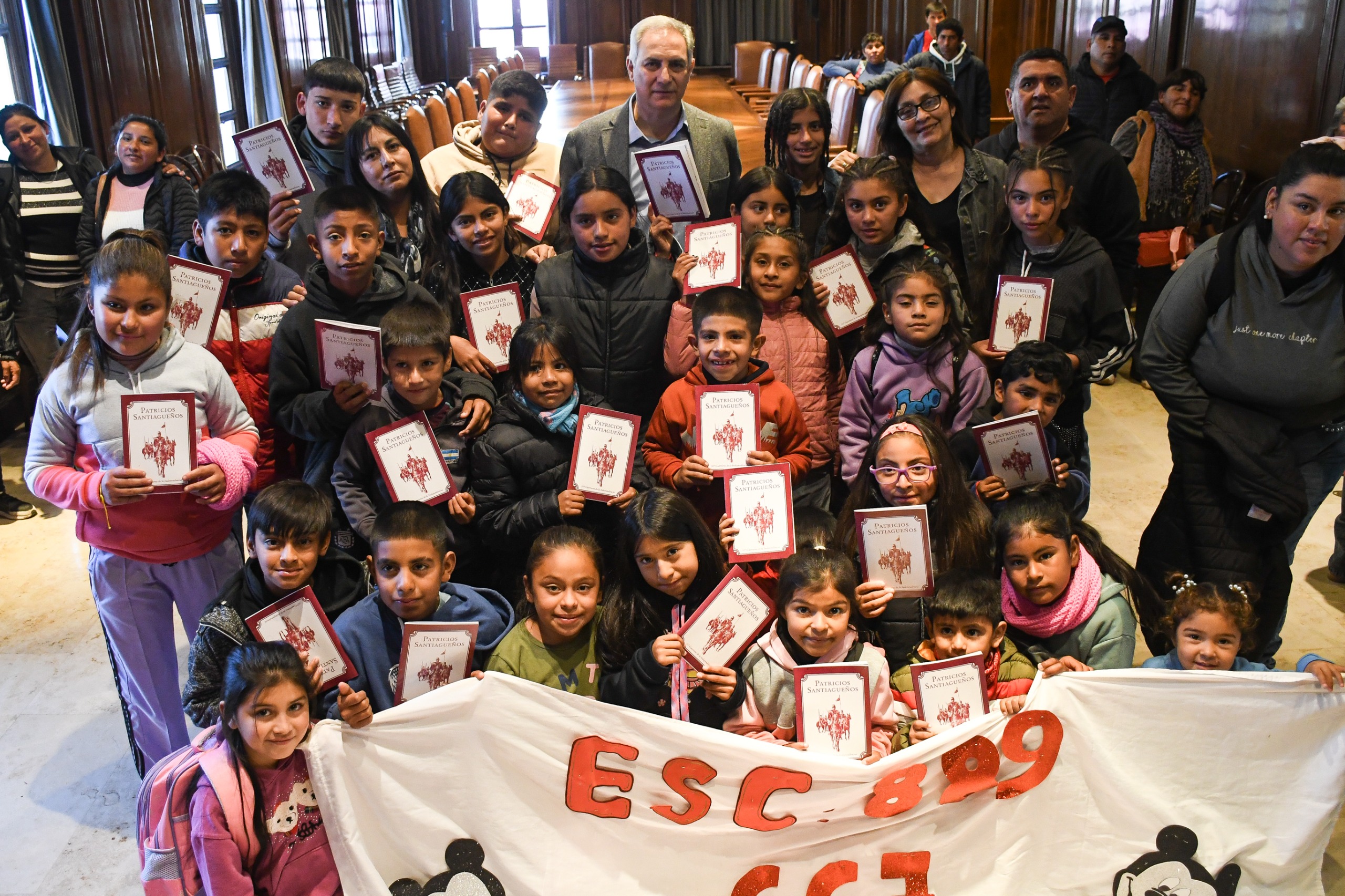 Un total de 50 alumnos acompañados por padres y docentes de ambas instituciones visitaron la sede central del Poder Ejecutivo Provincial y fueron recibidos por el ministro en el Salón de Acuerdos “Juan Felipe Ibarra”.