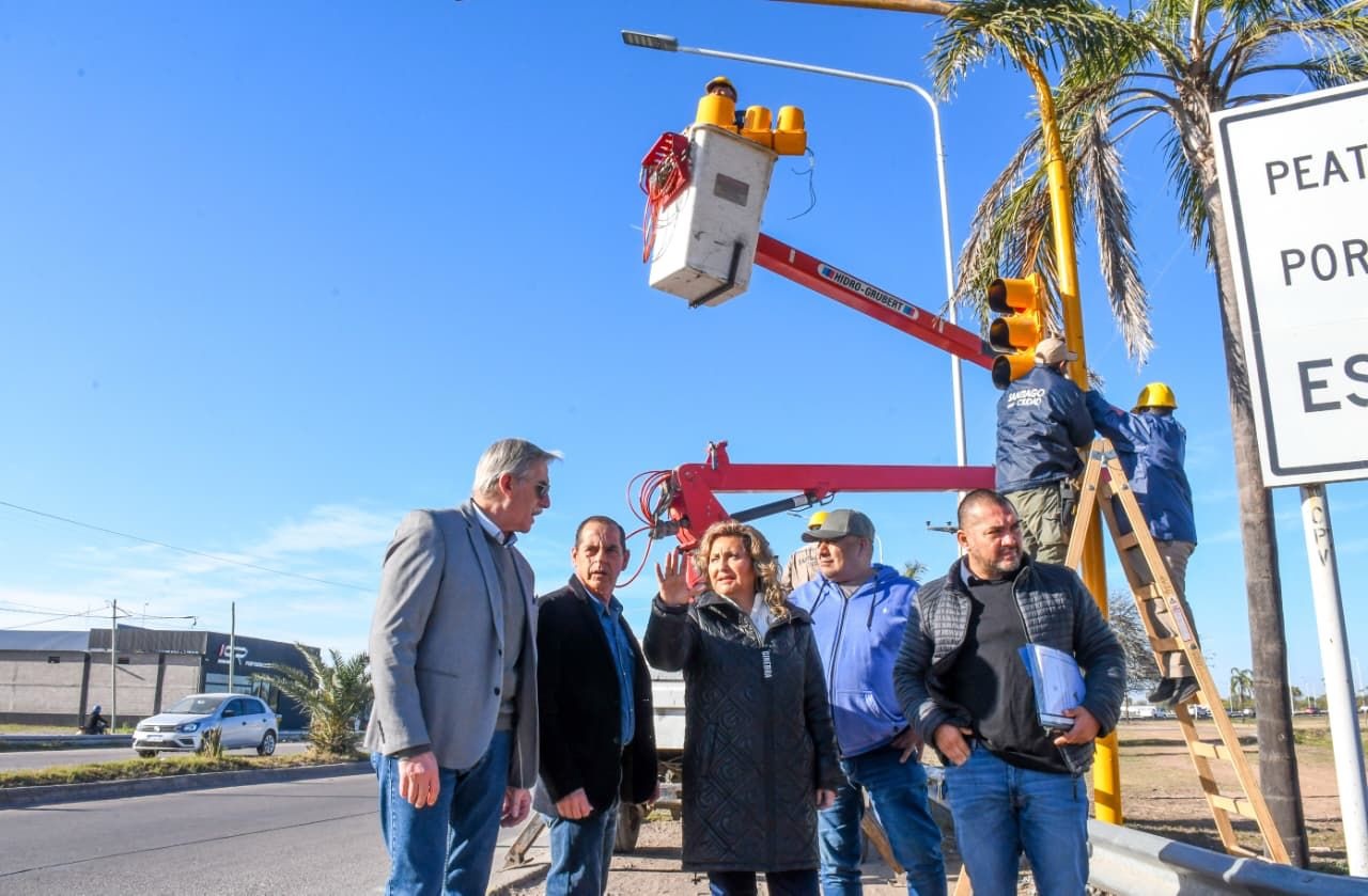 La intendente de la Capital, Ing. Norma Fuentes, observó los trabajos de instalación de los semáforos que comenzarán a funcionar en avenida Belgrano sur y rotonda de Circunvalación, a la altura del predio de Vialidad Nacional.