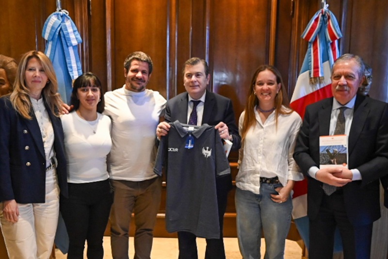 El gobernador Gerardo Zamora, junto al jefe de Gabinete Elías Suárez, recibió a miembros de la Fundación Espartanos, representada por su co fundador, Santiago Cerruti, acompañado por Sofía Olmos y Estefanía Arévalo, y al fundador de la Fundación Rugby Inclusión de Santiago del Estero, Miguel Ángel Torresi, junto a Rogelio Díaz Villalba y Marcelo Díaz.