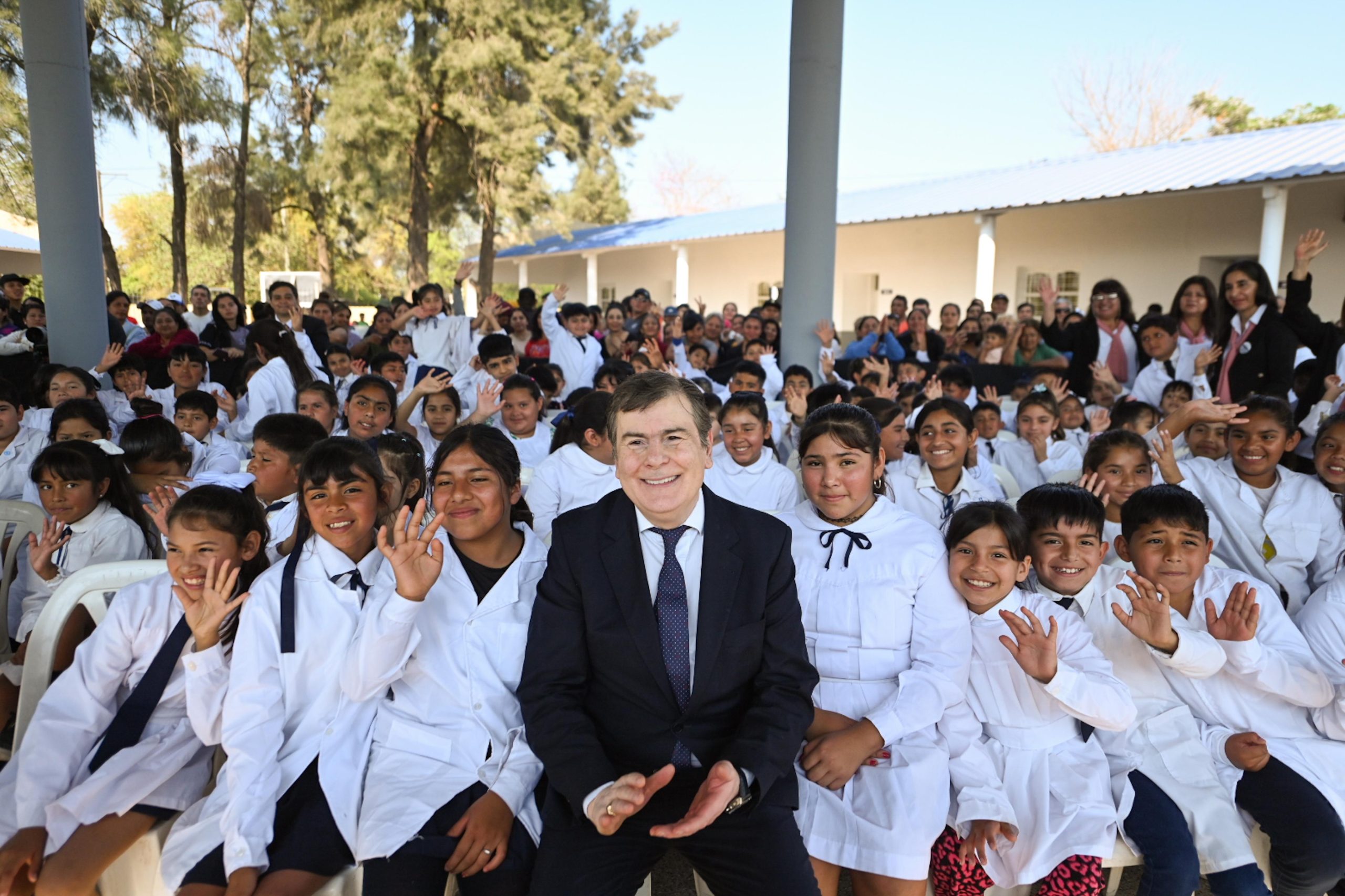 “La escuela es sinónimo de educación, es lo que nos permite verdaderamente generar dentro de toda la responsabilidad como Estado de brindar igualdad educativa”, subrayó el mandatario, quien también hizo hincapié en la inversión educativa para brindar más posibilidades.