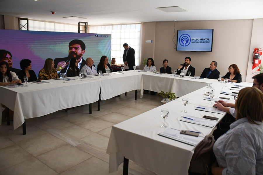 La mesa de apertura estuvo encabezada por el secretario de Salud, Gustavo Sabalza; la secretaria de DD.HH, Daniela Águila; el director del Centro Provincial de Abordaje Integral de Salud Mental, Néstor Medina; la directora del CIS Banda, Liliana Garnica, y la decana de la Facultad de Ciencias de la Salud de la Ucse, Analía Valentini.