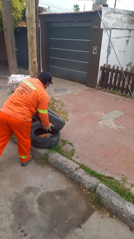 Empleados de la Dirección de Servicios Urbanos recolectaron los objetos desechados de las viviendas que representaban un potencial criadero para el mosquito transmisor, donde se podía acumular agua de lluvia y otros líquidos.