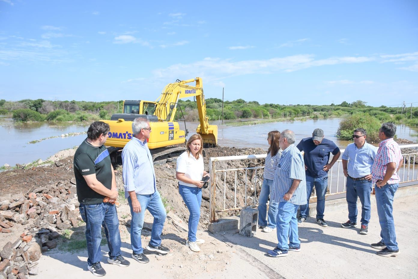 Durante los trabajos en el Desagüe Principal Sur mantuvo un encuentro con el gobernador, Elías Suárez, quien recorrió las zonas en donde se desarrollan las tareas.