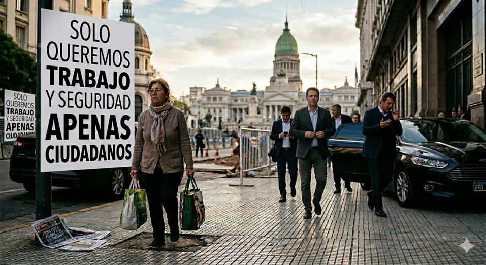 Los NOSOTROS, independiente del color partidario queremos aparte de que baje la inflación, libertad, trabajo bien remunerado, vacantes laborales, seguridad para transitar, salud pública de calidad, educación para nosotros y nuestros hijos, jubilaciones dignas y todas esas pretensiones quizás exageradas que nos permitan llevar una vida decorosa, pero además queremos lucha frontal contra la corrupción, los privilegios y transparencia, todo eso, aunque seamos APENAS CIUDADANOS.