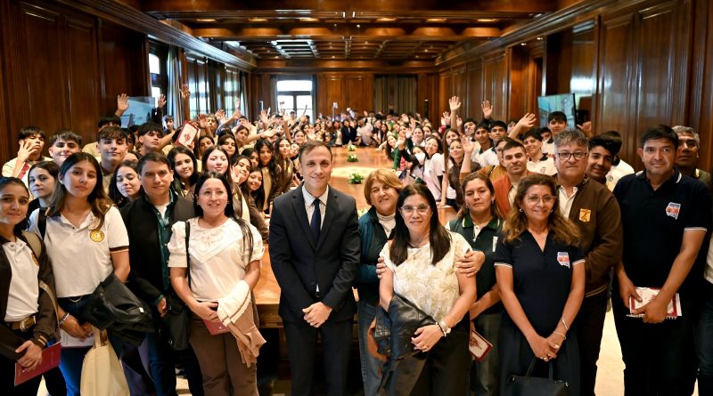 Los alumnos, acompañados por sus docentes, pudieron compartir experiencias educativas con el funcionario y conocer de cerca el funcionamiento del Estado santiagueño.