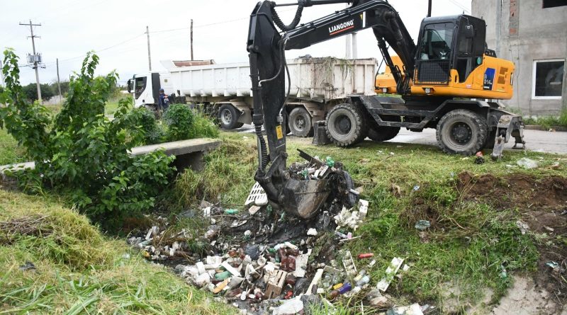 La repartición municipal desplegó una cuadrilla de casi 30 empleados, utilizando motoguadañas, retropalas, retroexcavadoras, bateas y volcadores, que efectuaron el corte de la maleza de los bordes y retiraron los residuos arrojados en el cauce.