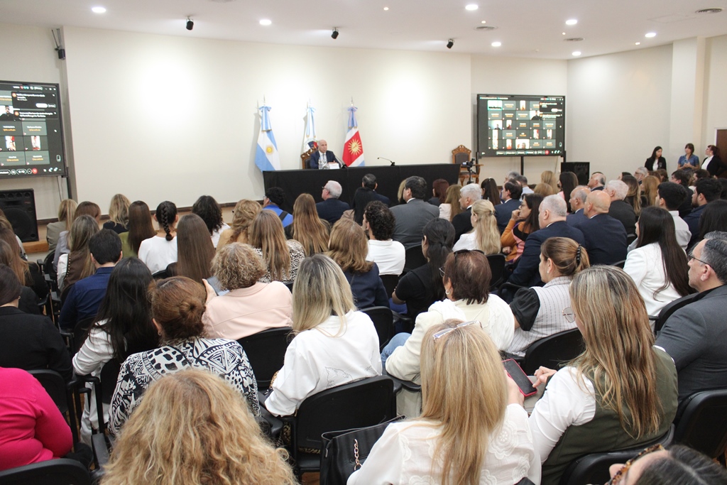 «Cuando hablamos de desafíos del Poder Judicial, prosiguió, encerramos una gran cantidad de aspectos que son desafíos en este Siglo 21. Se habla mucho de los desafíos en su organización institucional y frente a la sociedad, es decir, un aspecto es entender al Poder Judicial como poder del Estado y otro es como servicio a la sociedad. Hoy tenemos muchísimos conflictos en cada región, en cada ciudad”.